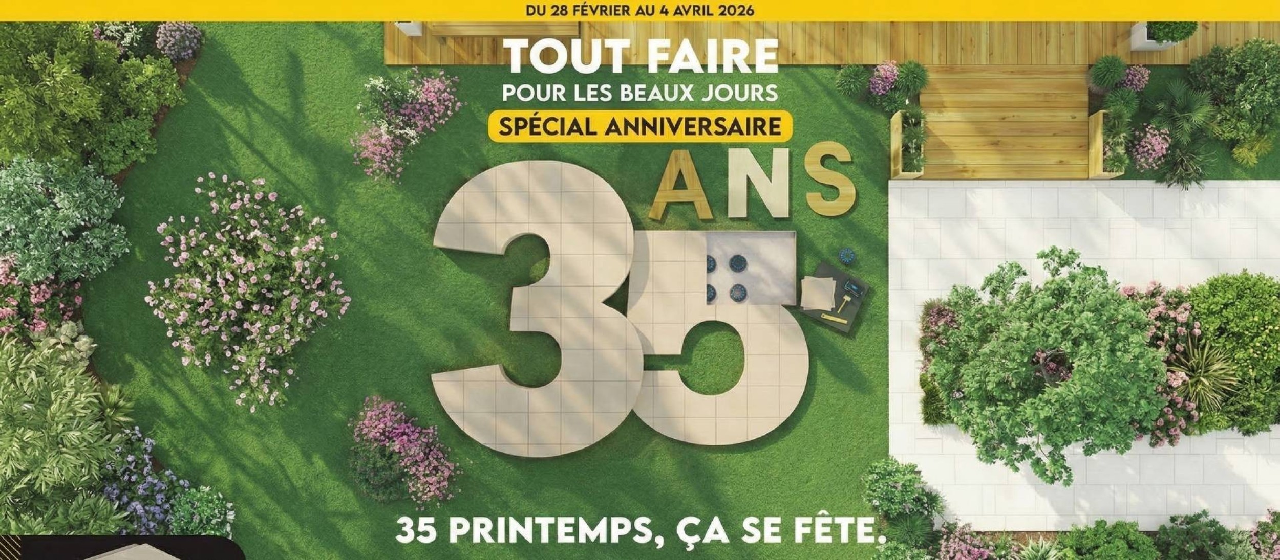 TOUT FAIRE SERAC à Morteau incarne fièrement les valeurs du groupement TOUT FAIRE reconnu pour la diversité de sa gamme de produits et pour leur qualité. Cette opération spéciale “35 printemps, ça se fête !”, valable jusqu’au 4 avril 2026, est l’occasion idéale de repenser votre extérieur sans faute de goût : terrasse conviviale, clôture élégante, massifs structurés, et d’en profiter pleinement pendant l’été. Le printemps arrive, et si cette année votre jardin devenait la plus belle pièce de la maison ?